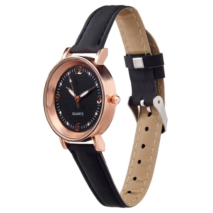 Часы наручные женские кварцевые "Ливато", d-3.7 см, черные