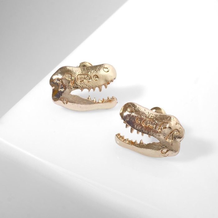 Серьги металл «Динозавры» скелет, цвет золото