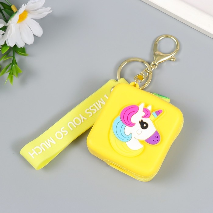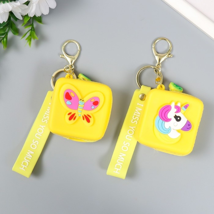 Брелок кошелёк с карабином силикон "Яркие картинки" квадратик жёлтый МИКС 6х3х7 см