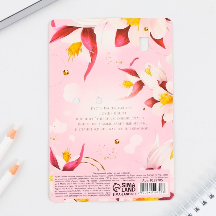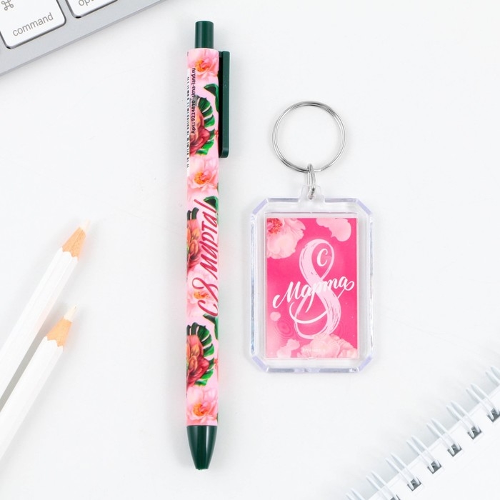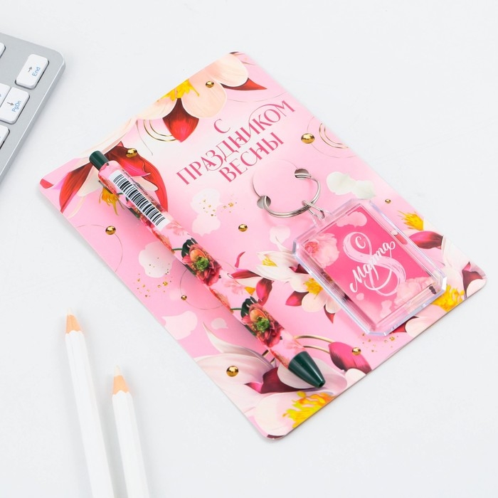 Подарочный набор: брелок и шариковая ручка «С Праздником весны», 16,2 см х 11 см .