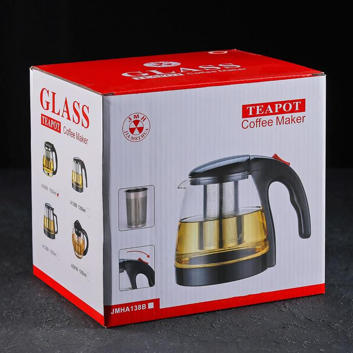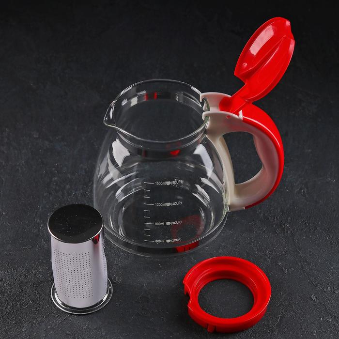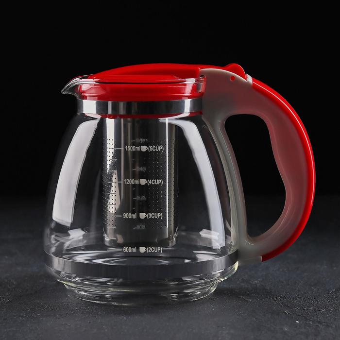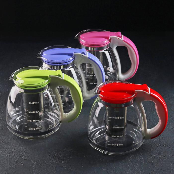 Чайник стеклянный заварочный, 1,5 л, с металлическим ситом, цвет МИКС
