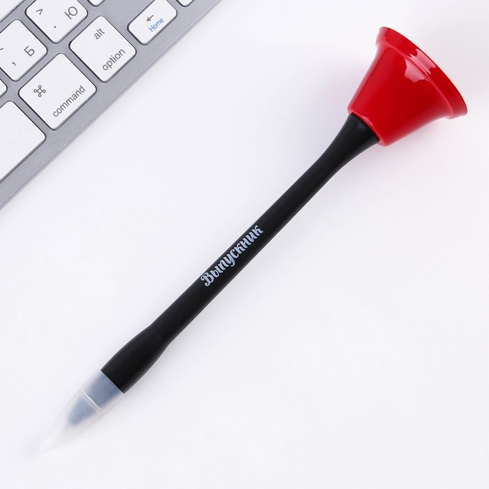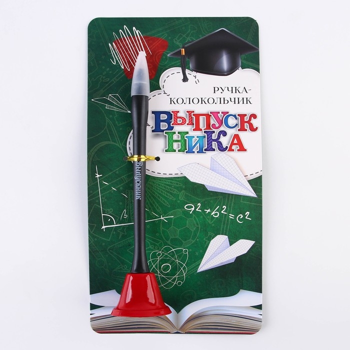 Ручка прикол колокольчик шариковая на открытке на выпускной «Выпускник» синяя паста 0.8 мм