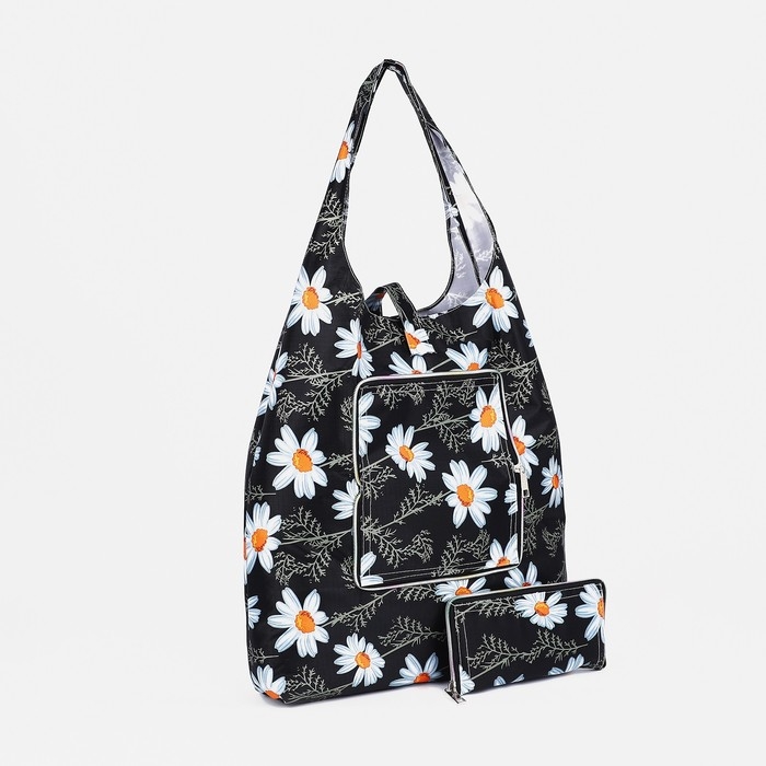 Сумка хозяйственная на кнопке, складная, цвет чёрный