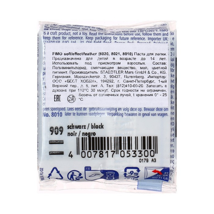 Полимерная глина FIMO подходит для начинающих мастеров и професиональных художников.ОсобенностиМасса мягкая, поэтому вы легко придадите ей нужную форму.Цвета можно смешивать для получения необходимых оттенков, которые сохранятся после обжига.После запекания изделия становятся прочными и долговечными.Упаковка легко открывается без использования ножа. Если вы не полностью израсходовали блок, то остатки можно завернуть в упаковку — так глина лучше сохранится.Термическая обработка. Готовое изделие поместите внутрь духовки на тарелке, стекле или фольге. Температура обжига не должна пpeвышaть 130 °С.Пластика рекомендована для детей старше 8 лет.