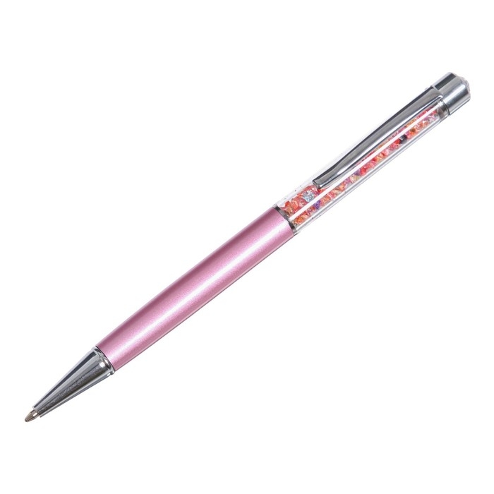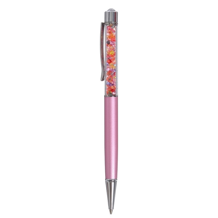Ручка подарочная шариковая в пластиковом футляре поворотная Стразы розовая с серебром