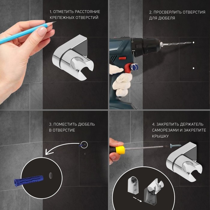 Держатель для душевой лейки ZEIN Z90, регулируемый, пластик, хром