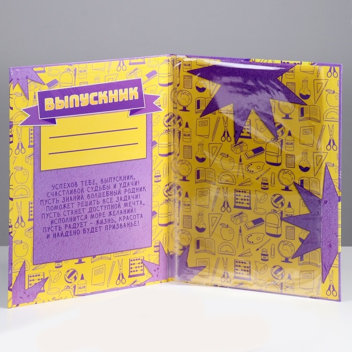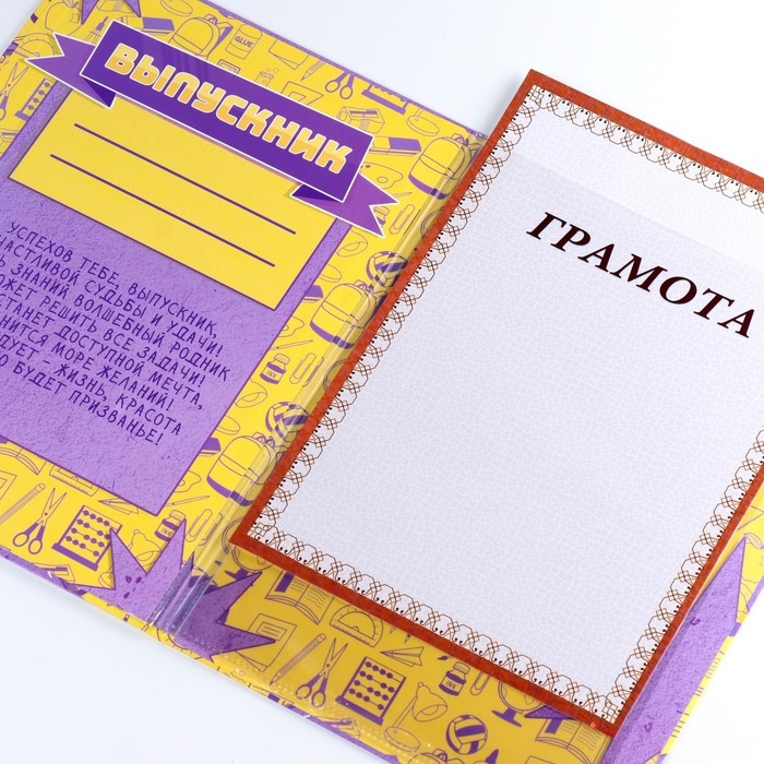 Папка с двумя файлами А4 "Выпускник" желтый и фиолетовый фон