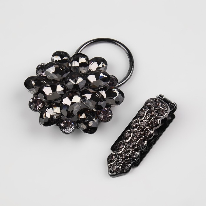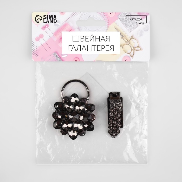 Декоративная застёжка «Стеклянный цветок», 10,5 × 5 см, цвет чёрный