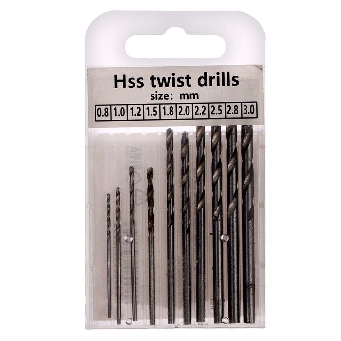 - Диаметры свёрл в наборе — от 0,8 до 3 мм.