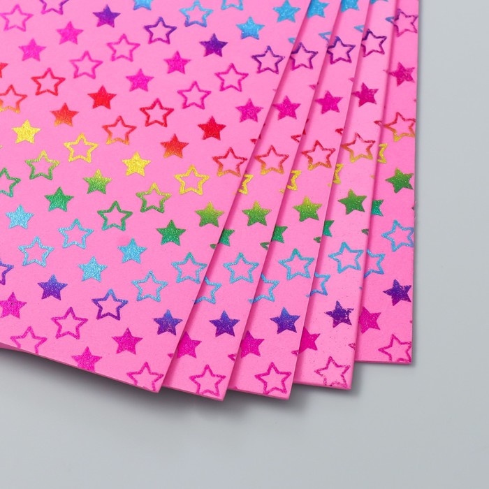 Фоамиран "Золотые звезды на ярко-розовом" 2 мм формат А4 набор 5 листов