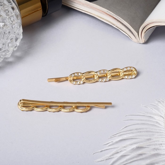 Невидимка для волос "Либерти" (набор 2 шт) сияние петельки, 4,5 см, золото