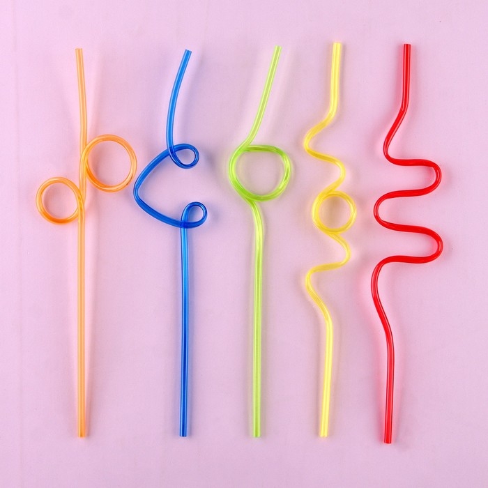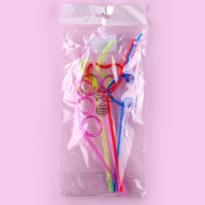 Трубочки для коктейля пластиковые «Завитушки», в наборе 5 штук, МИКС