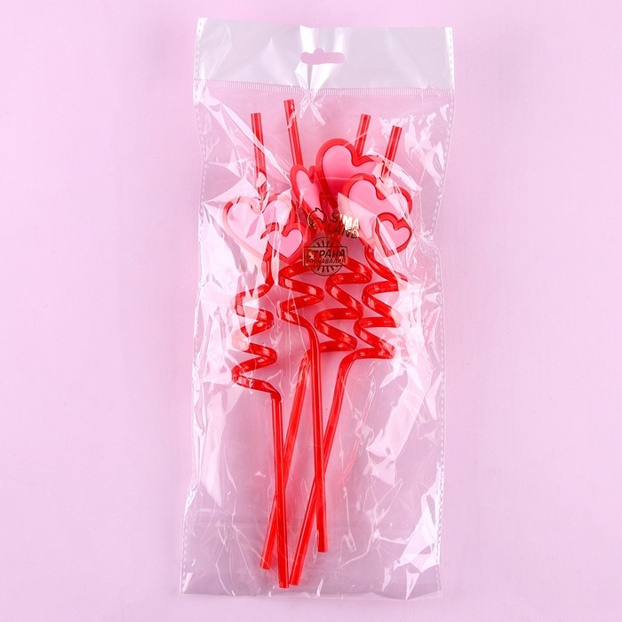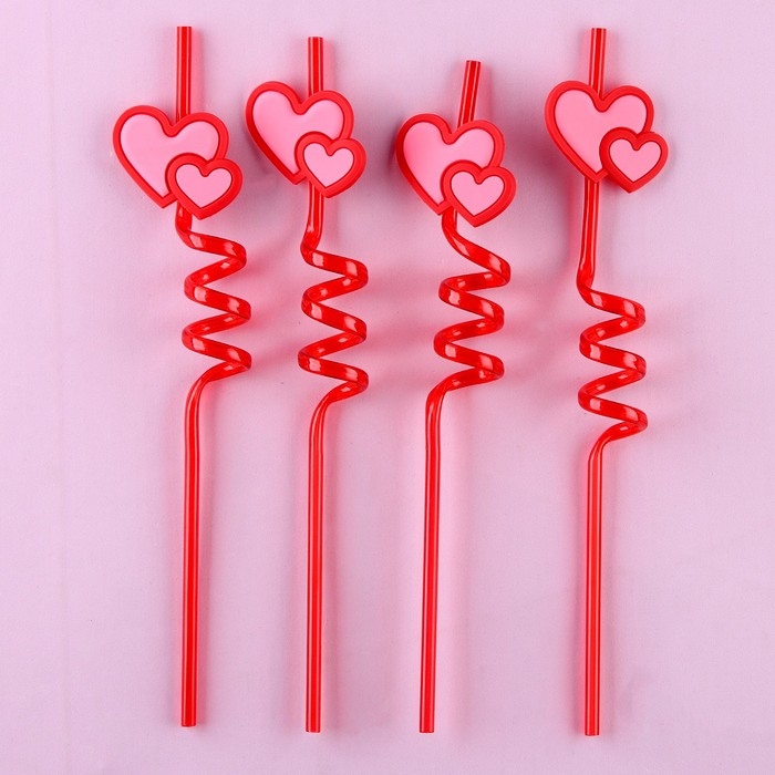 Трубочки для коктейля пластиковые «Сердца», в наборе 4 штуки