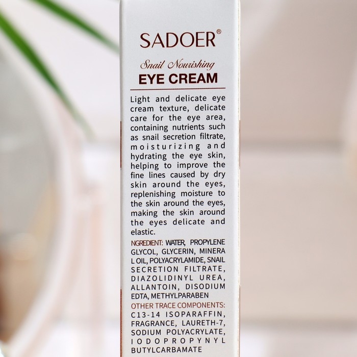 Состав: очищенная вода, глицерин, фильтрат улиточного муцина, масло жожоба, пропиленгликоль, пентаэритритил тетраизостеарат, акрилат, диметикон, никотинамид (витамин В3), гидрированные гидролизаты крахмала, гиалуроновая кислота, акрилат натрия, сополимер, ЭДТА динатрия, бис, метилпарабен, мочевина (карбамид), аромат.