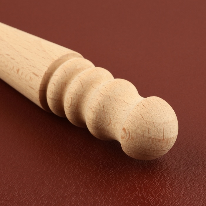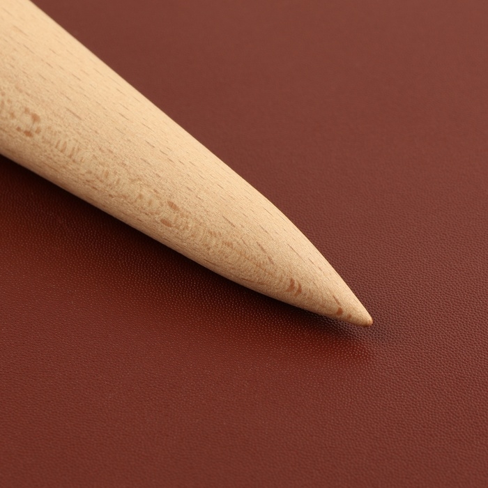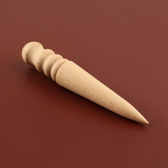 Сликер для полировки уреза кожи выполнен из прочного дерева, что обеспечивает долгий срок службы и надёжность в использовании. Инструмент имеет несколько канавок разного размера, что позволяет полировать края разной толщины. Выступающие широкие и узкие концы сликера подойдут для выдавливания с изнанки, а также формирования объёмного рисунка.