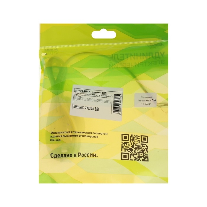 Шнур Luazon Lighting ECO, 1.7 м, ШВВП 2х0.5 мм2, с проходным выключателем, белый