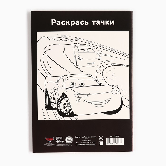 Картон белый, А4, 16 листов, немелованный, односторонний, в папке, 220, г/м², Тачки