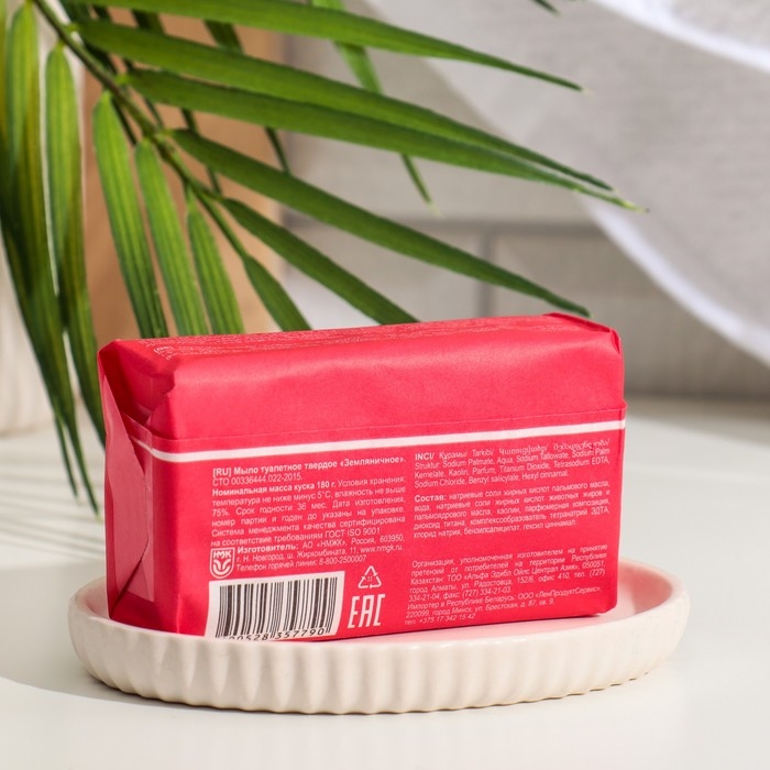 Туалетное мыло «Земляничное» — это оптимальный вариант для практичных семей, где ценят традиционные рецепты красоты. Пудровый аромат спелой клубники с нотами зелени, ириса, ванили, малины, карамели поднимет настроение на весь день.
