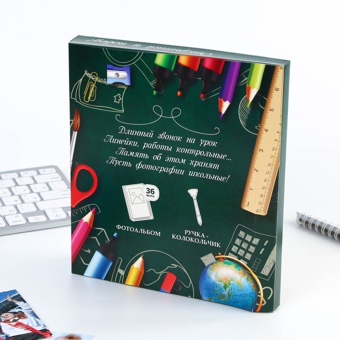 Подарочный набор на выпускной: фотоальбом на 36 фото и ручка-колокольчик «Прощай, школа!»