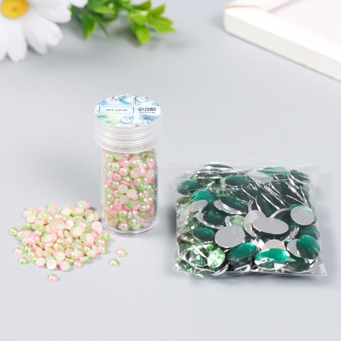 Декор "Градиент розово-зелёный" d=4 мм 10г 200 шт 5х2,5 см МИКС
