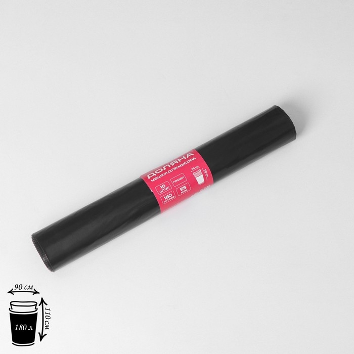 Мешки для мусора Доляна «Профи», 180 л, 90×110 см, 55 мкм, ПВД, 10 шт, цвет чёрный