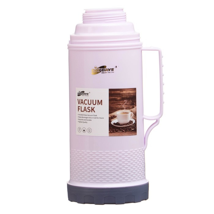 Термос 1 л, со стеклянной колбой, сохраняет тепло 12 ч, с кружкой, розовый