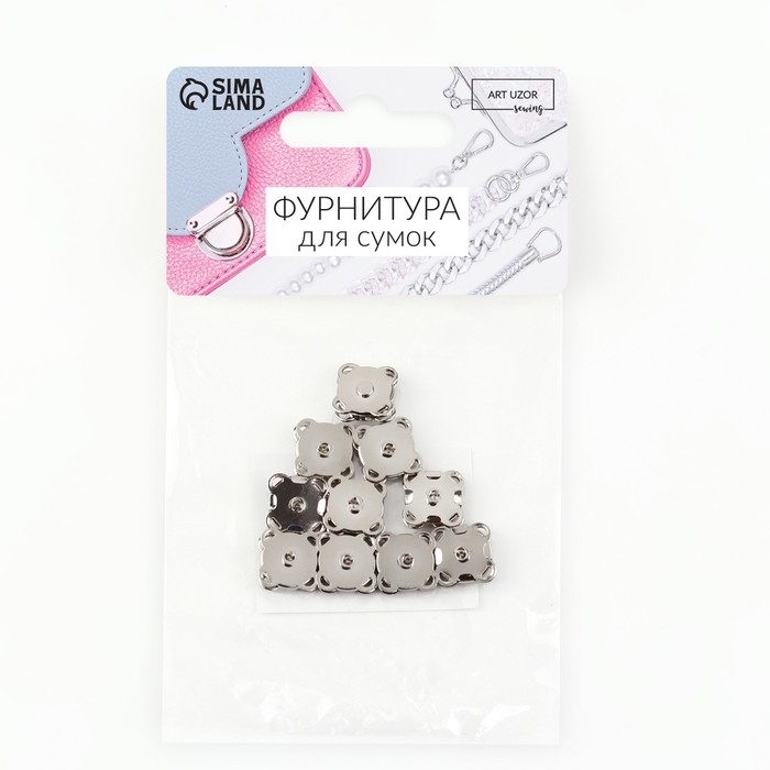 Кнопки магнитные, пришивные, d = 10 мм, 10 шт, цвет серебряный