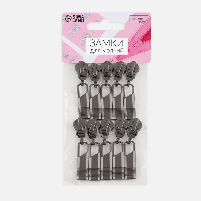 Бегунок автоматический для молнии «Трактор», №5, 10 шт, цвет чёрный никель
