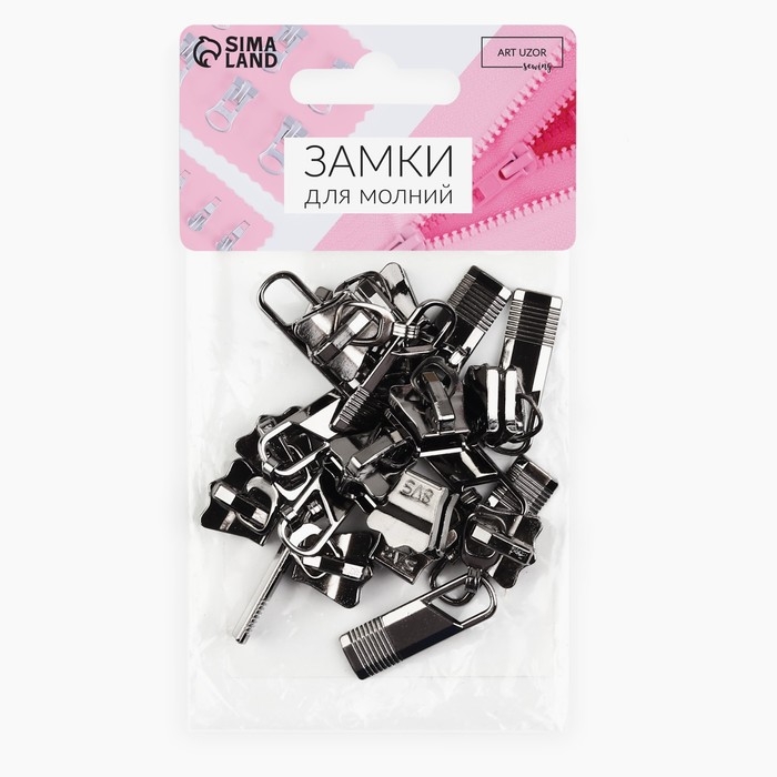 Бегунок автоматический для молнии «Трактор», №8, 10 шт, цвет чёрный никель