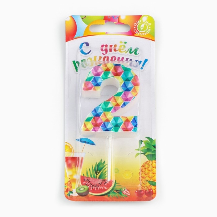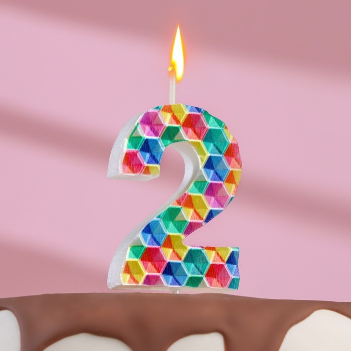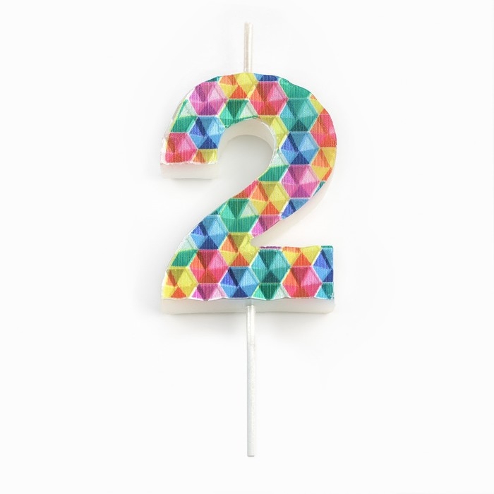 Свеча в торт на шпажке "Калейдоскоп", цифра 2, 7 см