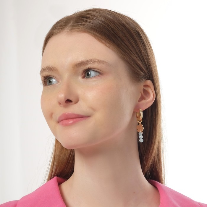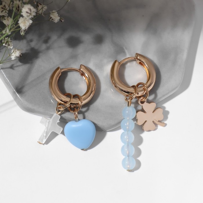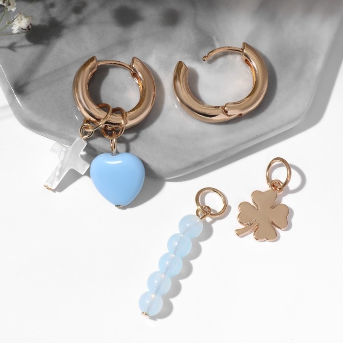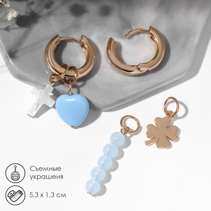 Серьги со съёмным элементом «Трансформер» клевер-сердце, цвет бело-бежевый в золоте