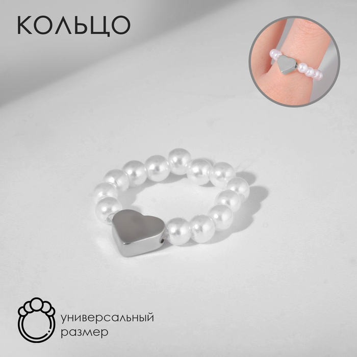 Кольцо «Сердечко», цвет белый с серебром