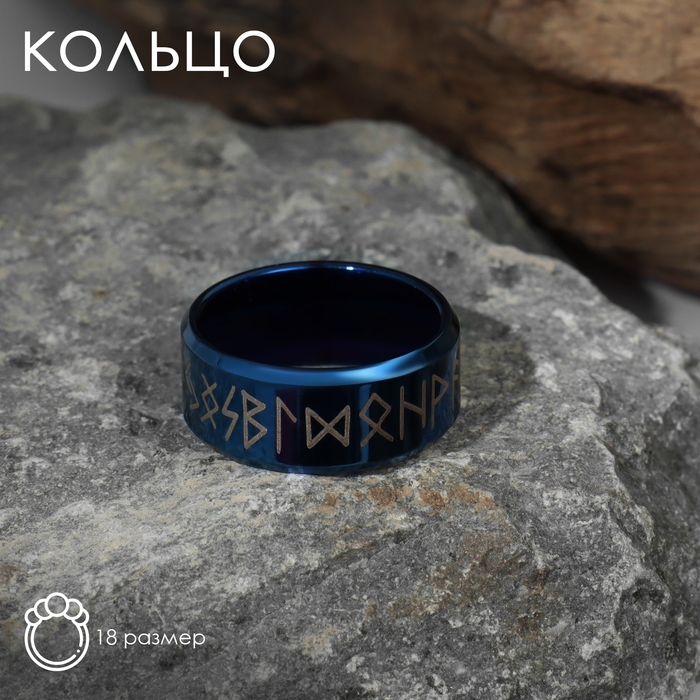 Кольцо «Вальхалла» с рунами, цвет бело-синий 18 размер