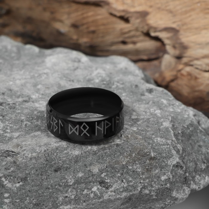 Кольцо «Вальхалла» с рунами, цвет чёрно-белый, 17 размер