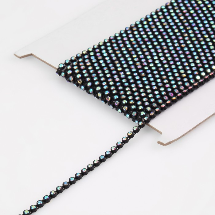 Стразы на нитях, с голографией, 3 мм, 9 ± 1 м, цвет чёрный