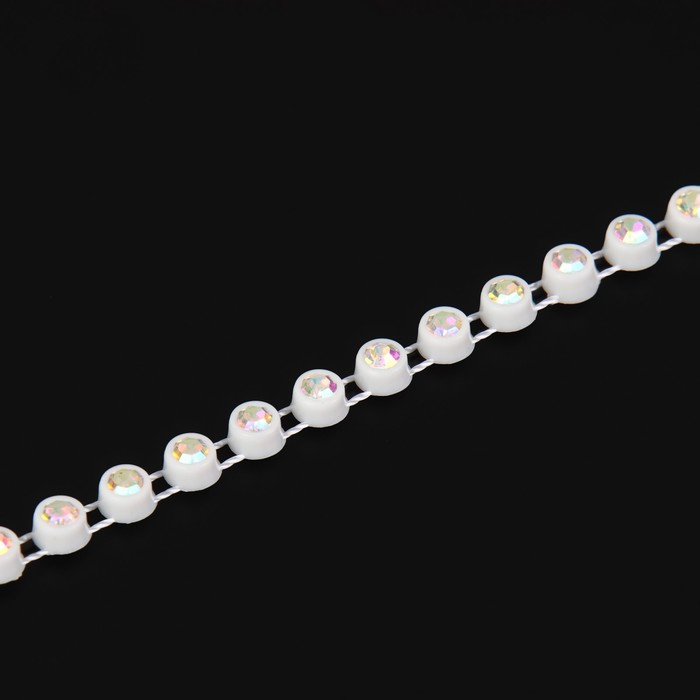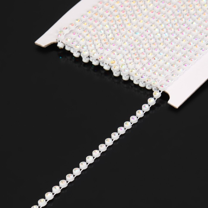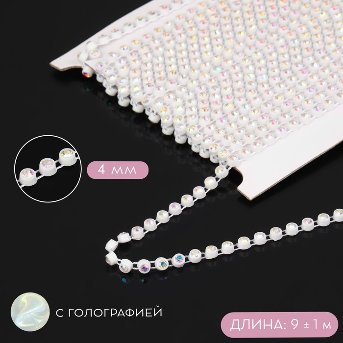 Стразы на нитях, с голографией, 4 мм, 9 ± 1 м, цвет белый