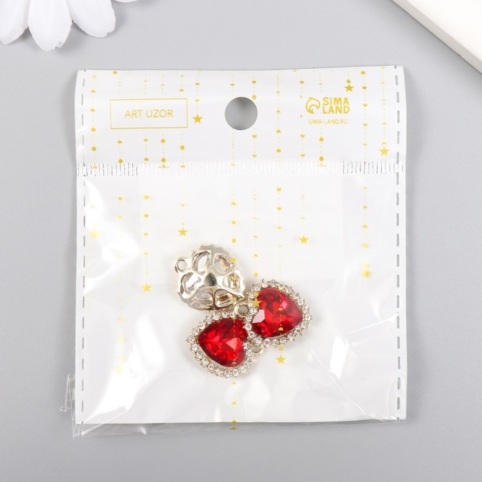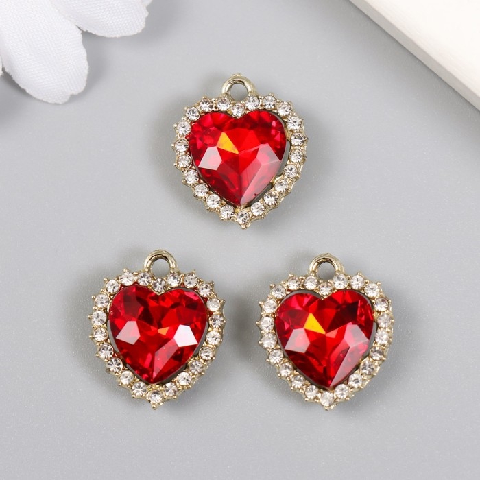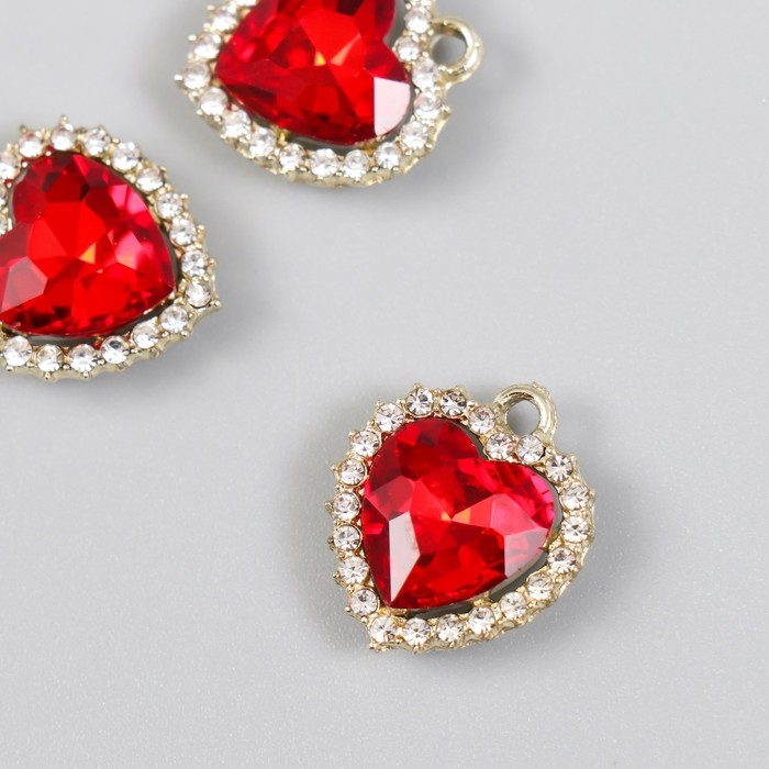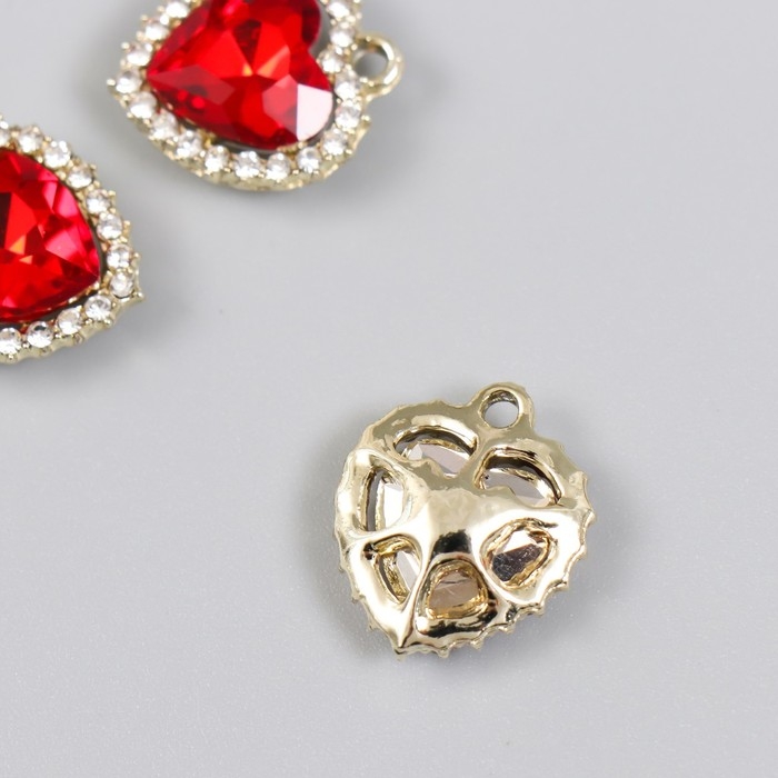 Декор для творчества металл, стразы "Красное сердце океана" золото 1,6х1,8 см