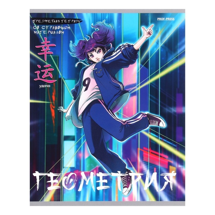 Тетрадь предметная 48 листов в клетку Аниме "Геометрия", обложка мелованный картон, тиснение холодной фольгой, ламинация Soft-Touch, блок офсет