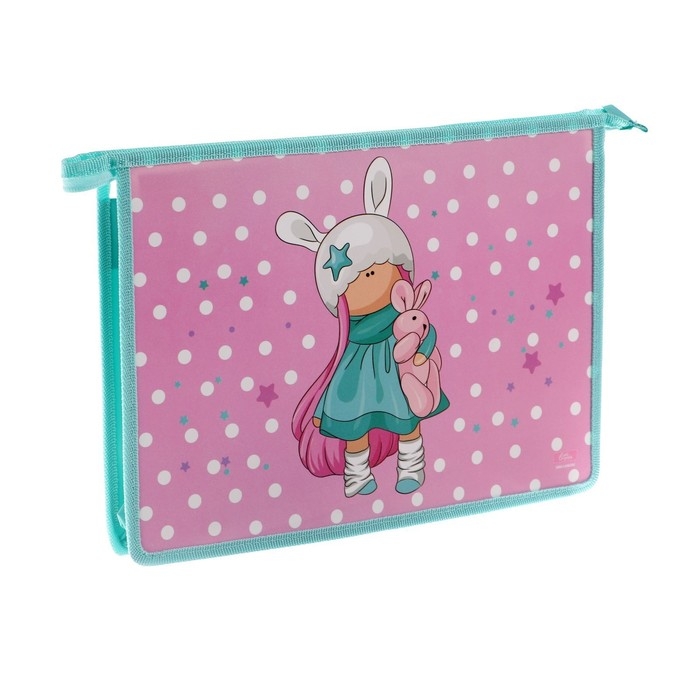 Папка для тетрадей А4, 325 х 230 х 55 мм, молния сверху, пластиковая, ПМ-А4-29 Calligrata "Девочка"
