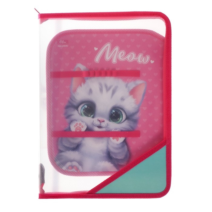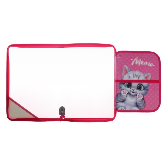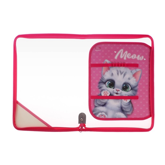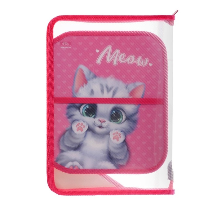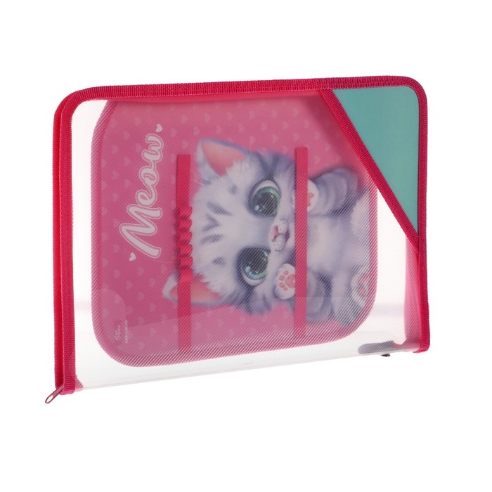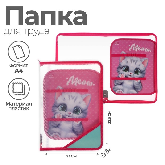 Папка для труда А4, 325 х 230 х 25 мм, молния вокруг, откидная планка, пластиковая, ПТР-1, Calligrata "Котик"