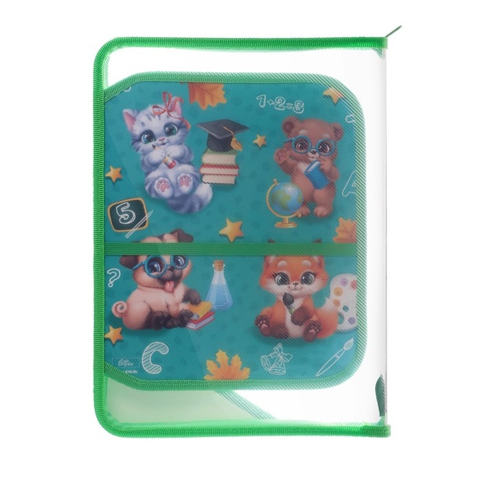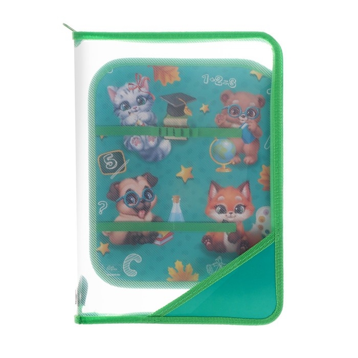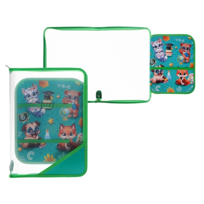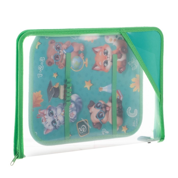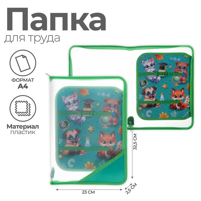 Папка для труда А4, 325 х 230 х 25 мм, молния вокруг, откидная планка, пластиковая, ПТР-1, Calligrata "Зверята"
