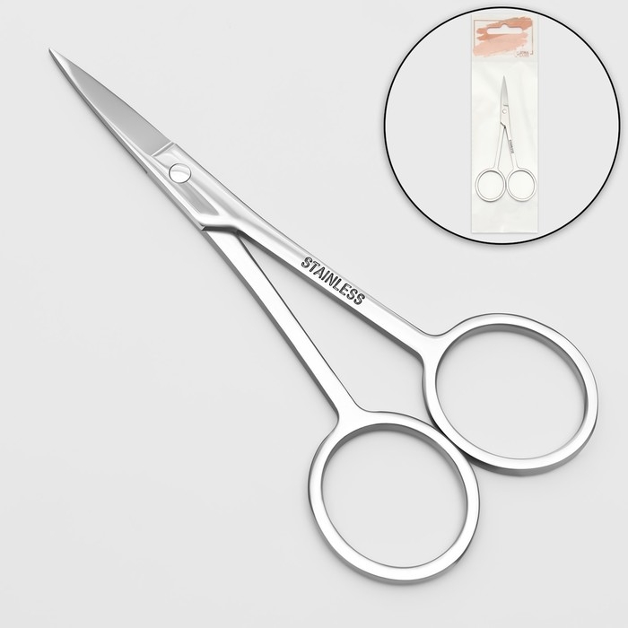 Ножницы маникюрные для кутикулы, загнутые, зауженные, 9 см, цвет серебристый
