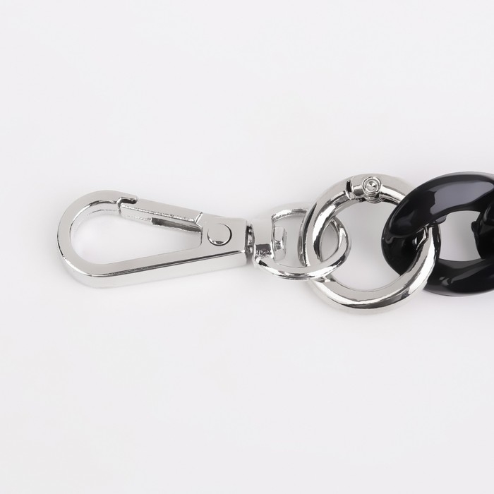Цепочка для сумки, пластиковая, с карабинами, 23 × 17 мм, 68 см, цвет чёрный/серебряный