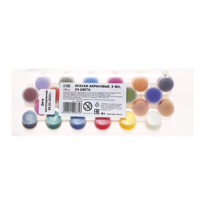 Краска акриловая, набор 24 цвета х 3 мл, Calligrata, морозостойкие, в пакете