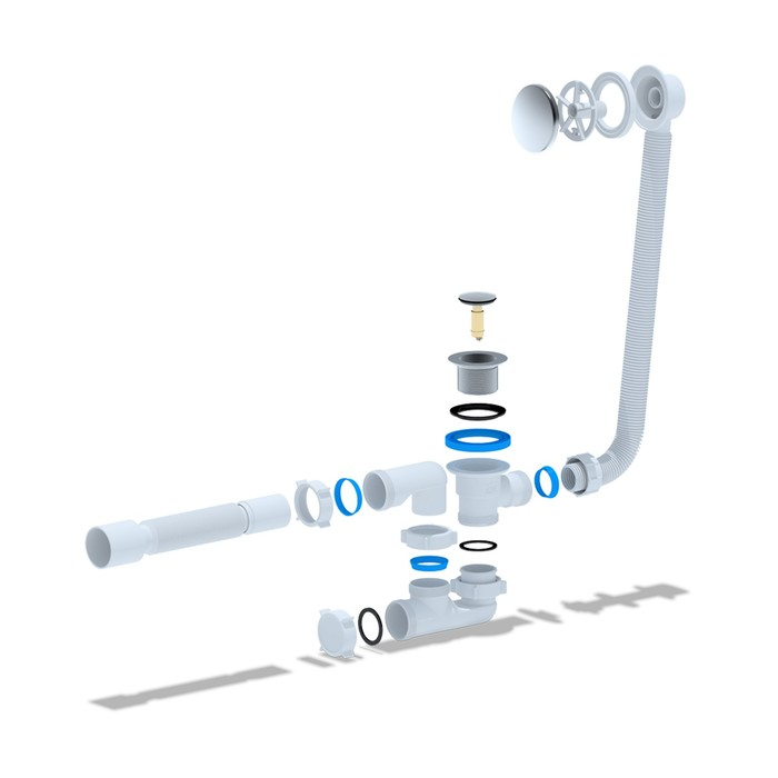Сифон используется для ванны. Слив воды закрывается и открывается с помощью нажатия на кнопку выпуска.