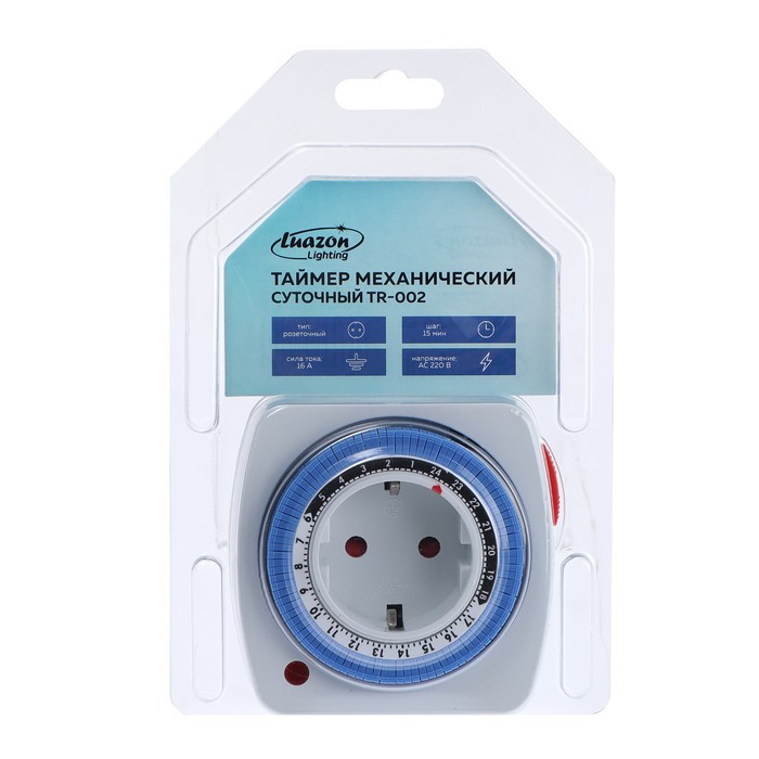 Розеточный механический таймер суточный Luazon Lighting, 16A, шаг 15 мин, 220 В