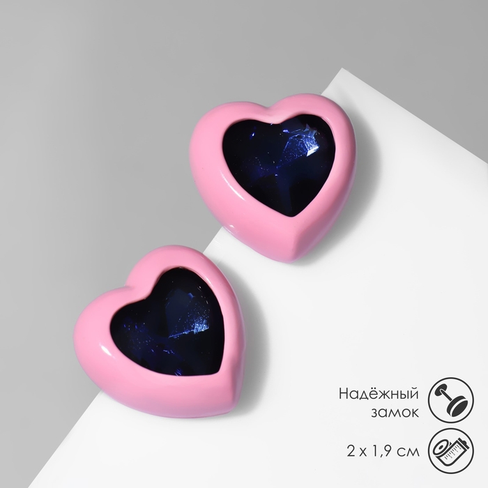 Серьги пластик «Сердечки» в рамке, цвет сине-розовый