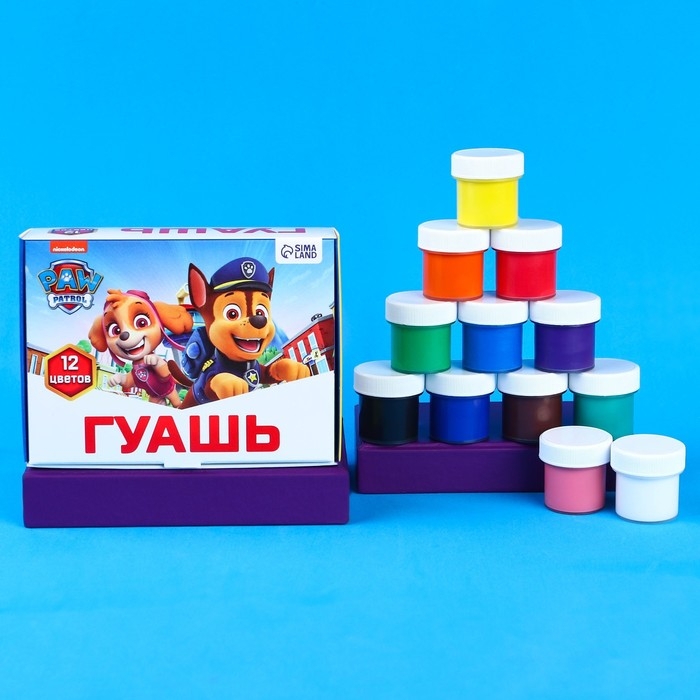 Гуашь 12 цветов по 10 мл, Щенячий патруль