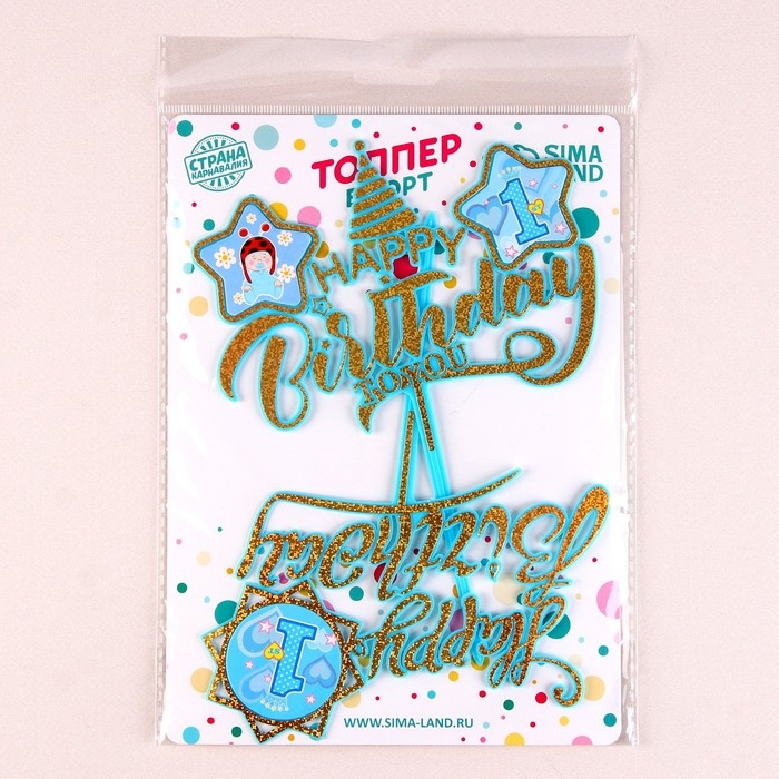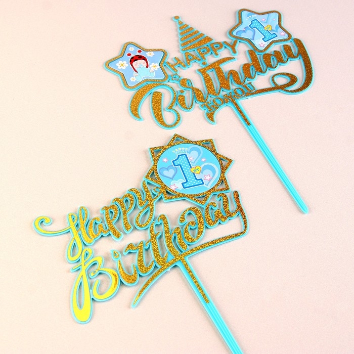 Набор топперов «С днём рождения», 1 год, для мальчика, 2 штуки