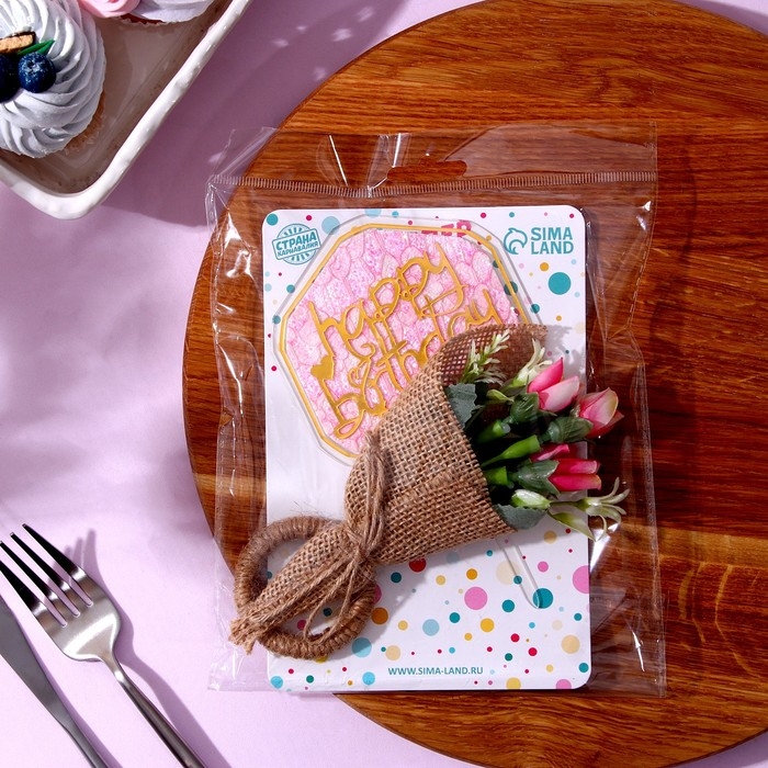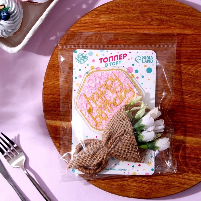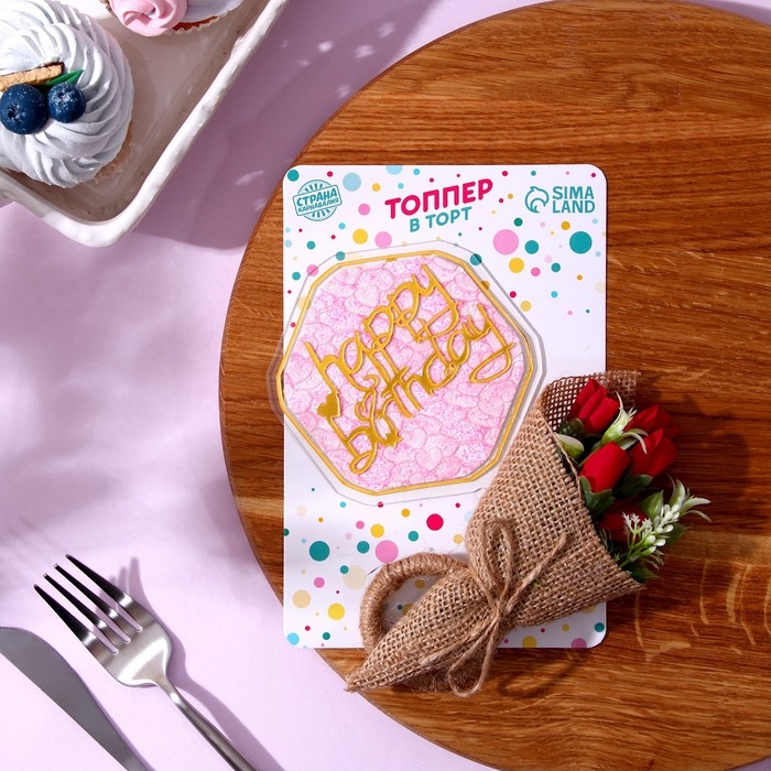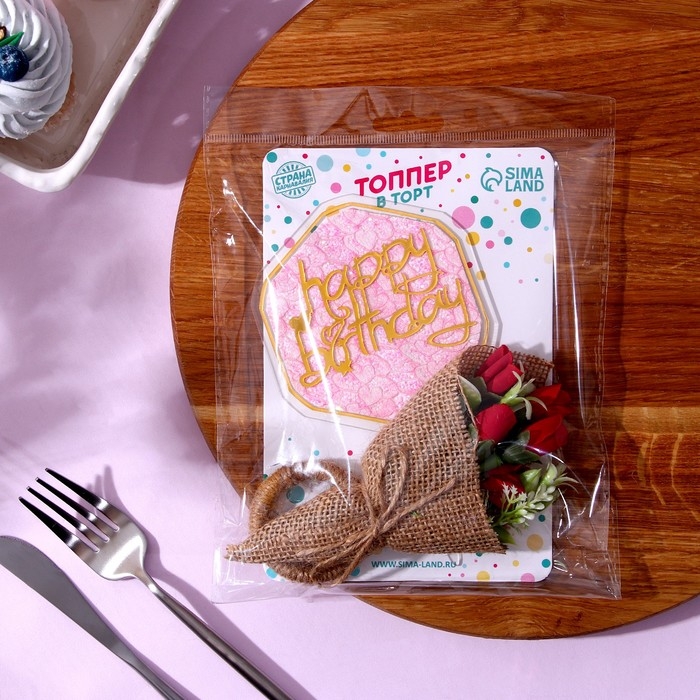 Комплект для украшения десертов с топпером «С днём рождения» и кольцом для салфеток — это изысканное решение для вашего праздничного стола.